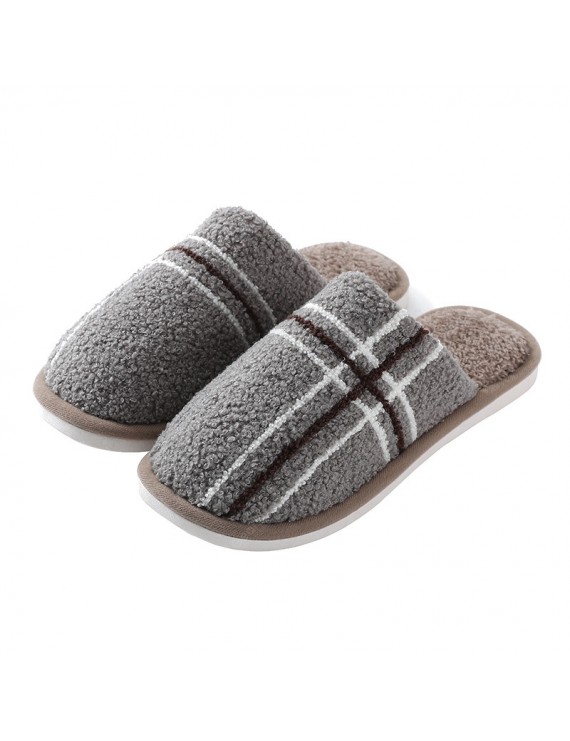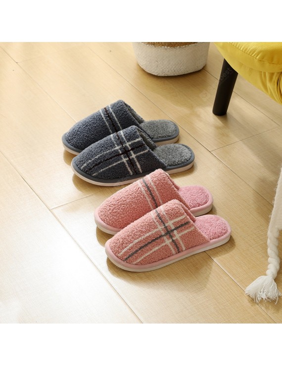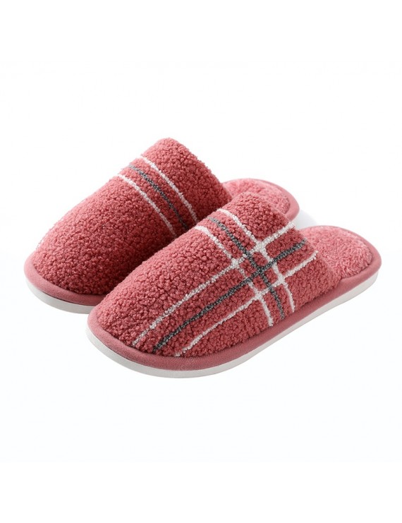 Cotton Slippers Cute Female Household 2020 Autumn And Winter Warmth Couple Home Skid Slippers Male Deodorant Hair - Pink Stripes 44-45 (suitable for 43-44 feet)