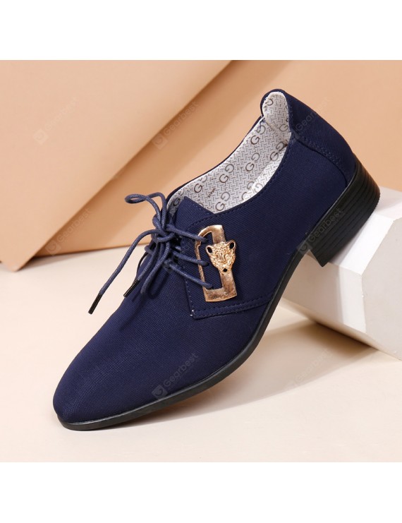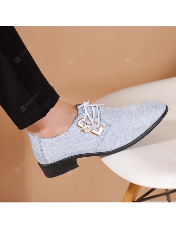 Summer British Men's Casual Leather Shoes Large Size Breathable Cloth Dress Shoes - Light Blue 39