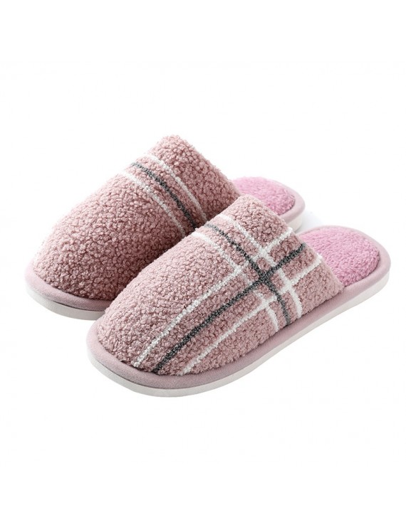 Cotton Slippers Cute Female Household 2020 Autumn And Winter Warmth Couple Home Skid Slippers Male Deodorant Hair - Pink Stripes 44-45 (suitable for 43-44 feet)